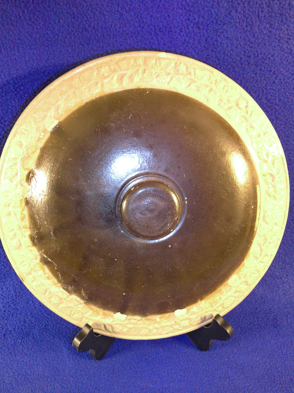 Circa 1870 10" Decorated Stoneware Cake Crock Lid #6900