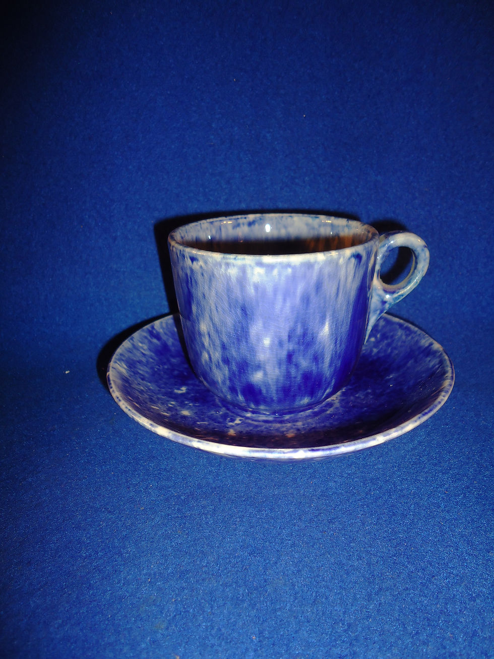Blue and White Spongeware Stoneware Cup and Saucer #11731