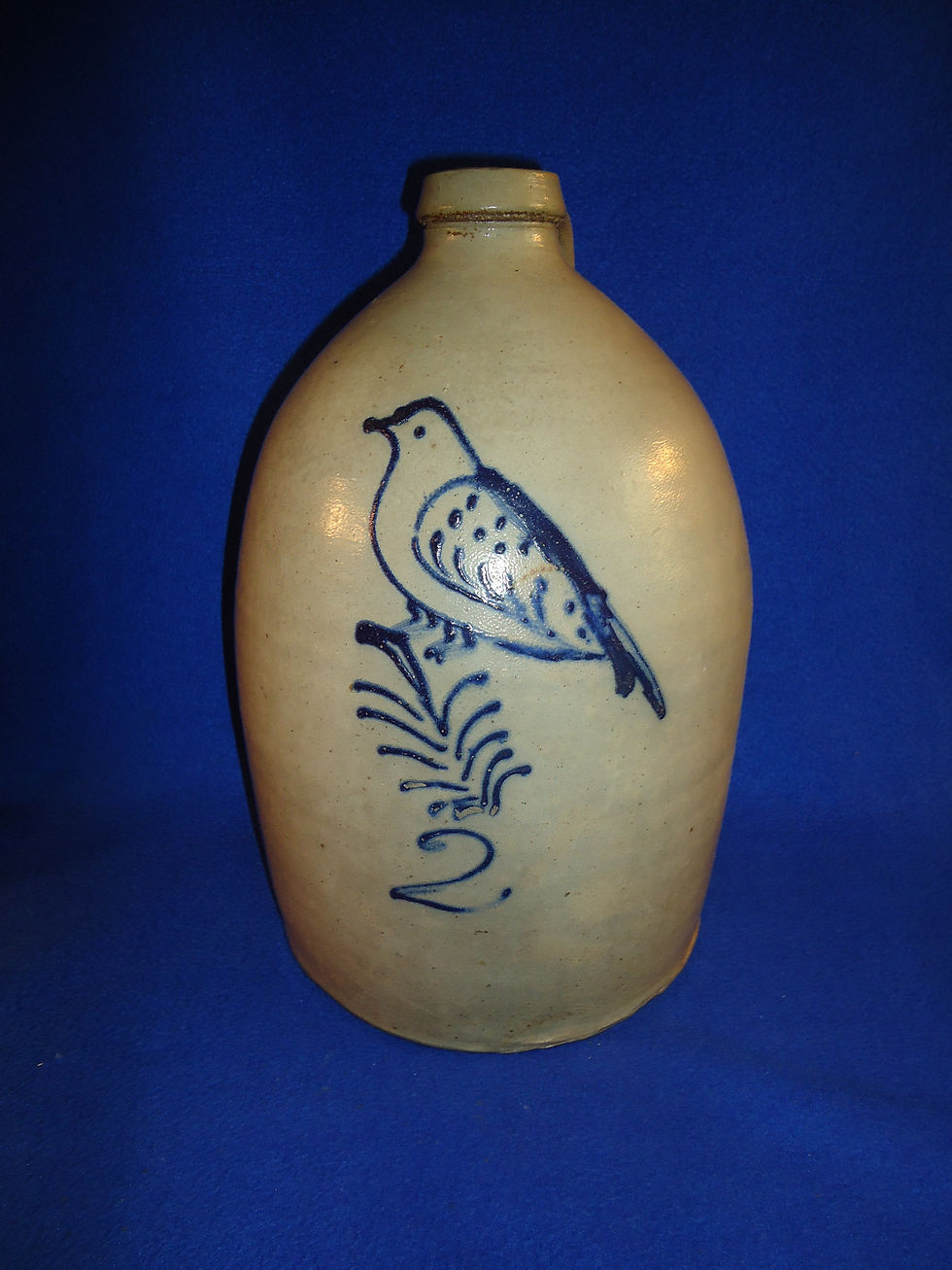 Circa 1870 Stoneware Jug with Folk Art Bird Decoration #9346