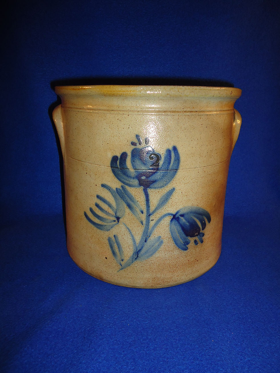 Circa 1870 2 Gallon Stoneware Crock with Triple Tulips from the Northeast #8667