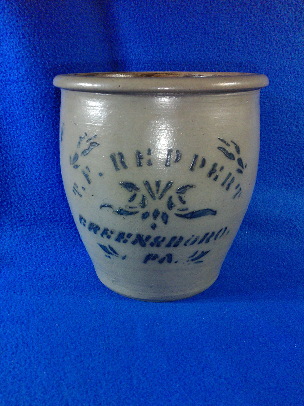 Coming to you from Doc's Crocks is this wonderful Blue and Gray 2 Gallon Water Cooler made by the Robinson Clay Products Company of Akron, Ohio. This company was in existence from 1900-1915.