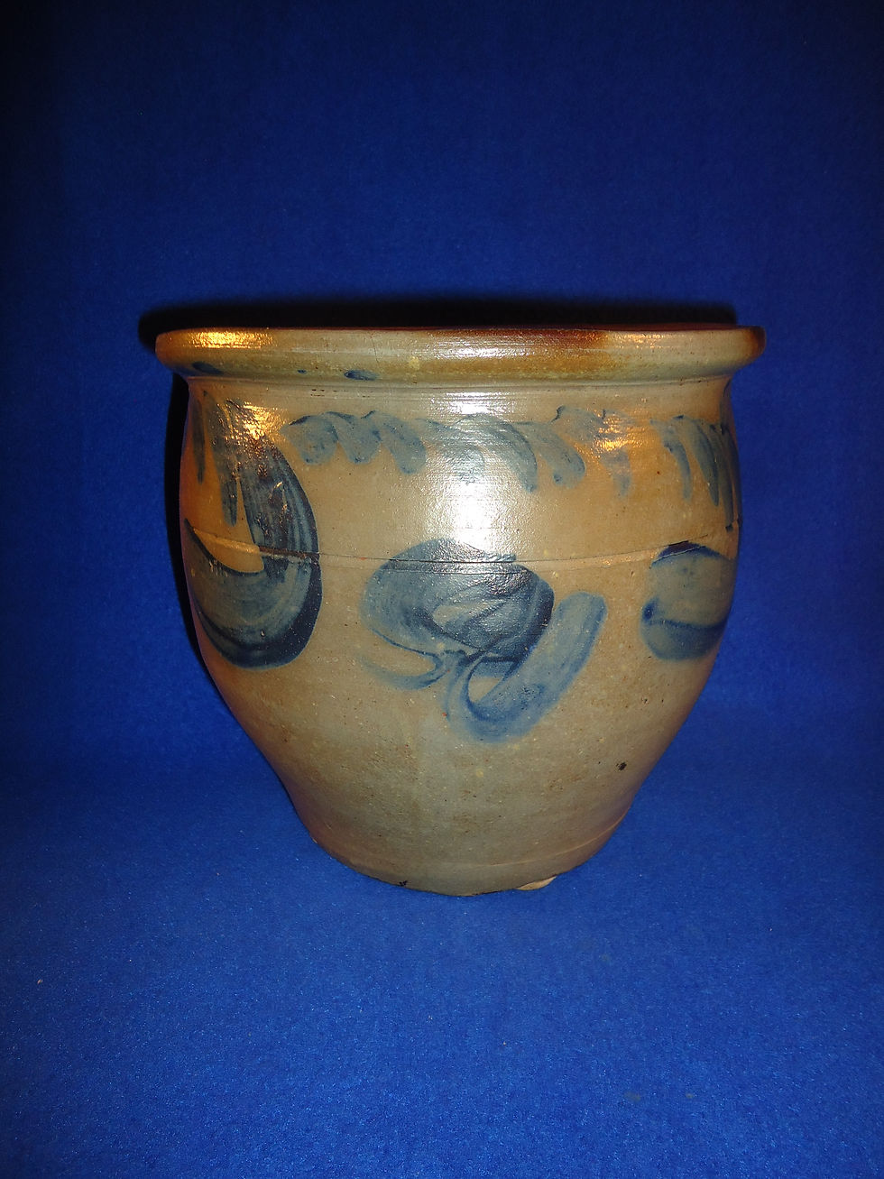 It was made by the Hull Pottery in the early 20th century. This crock is discussed in Terry Taylor and Terry & Kay Lowrance, Collector's Encyclopedia of Salt Glaze Stoneware, pp. 111-112. This came in at least three sizes and this one is the largest.