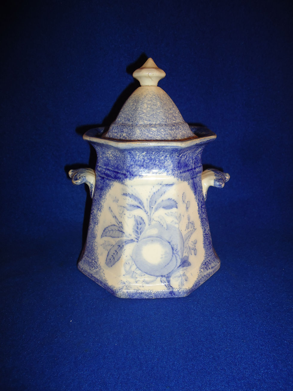 Blue and White Staffordshire Spatterware Lidded Sugar Bowl #3583